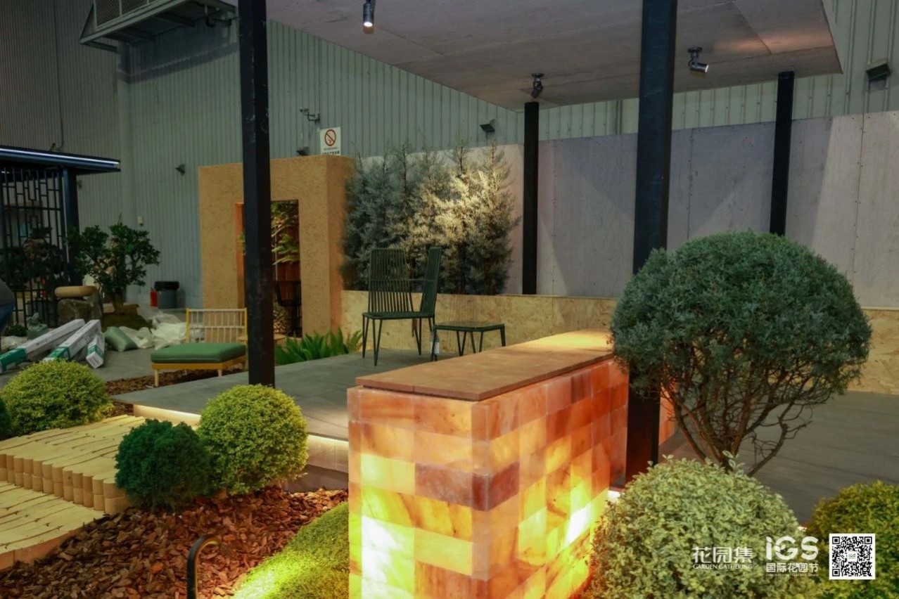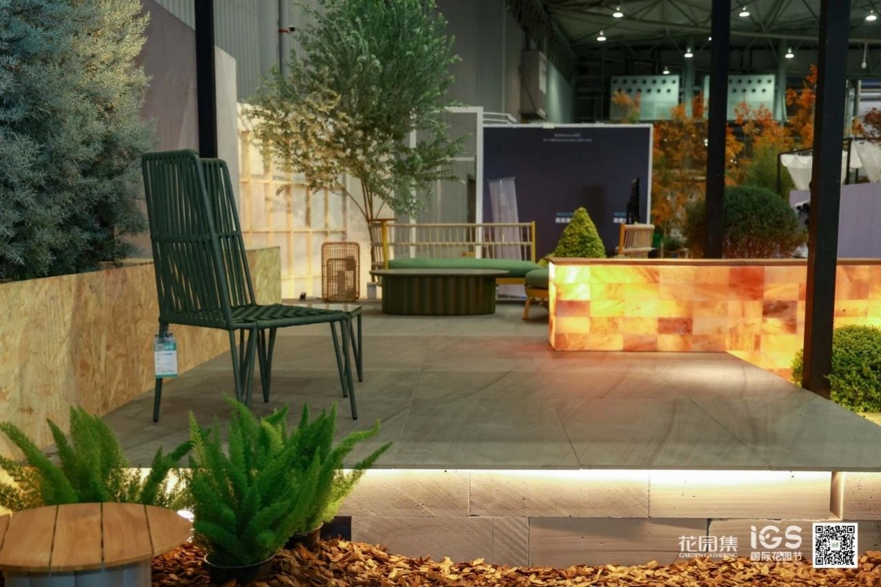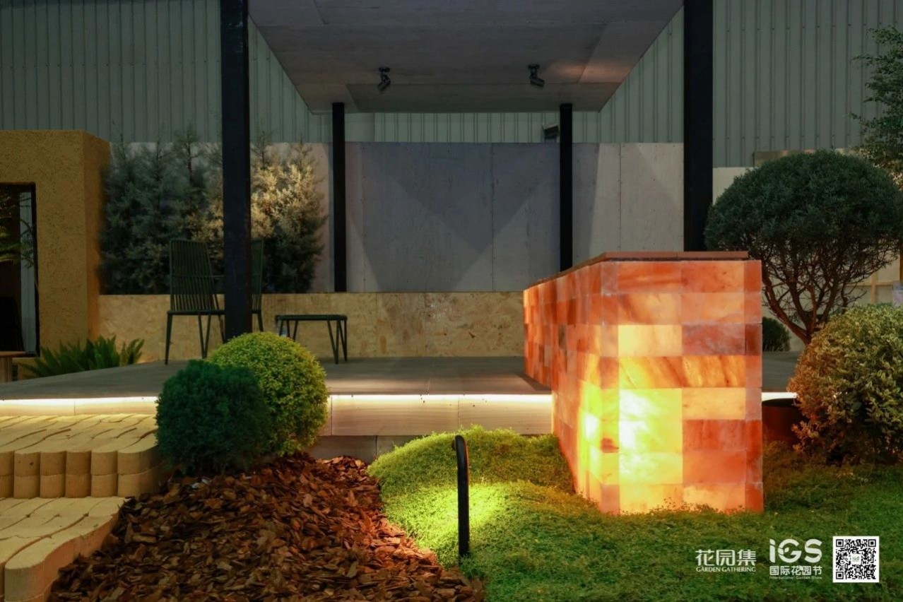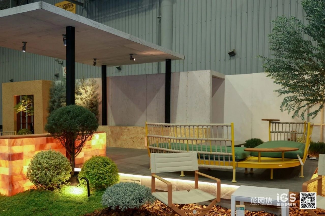 空間承載并展示了休閑、聚會、烤火等庭院常用的三大功能。這樣的展示設(shè)計貼近生活,詮釋了花園的生活意義。