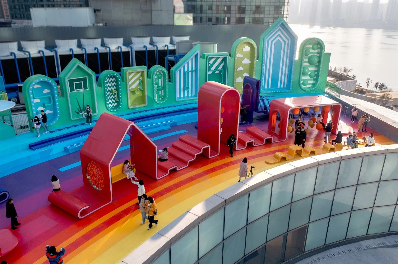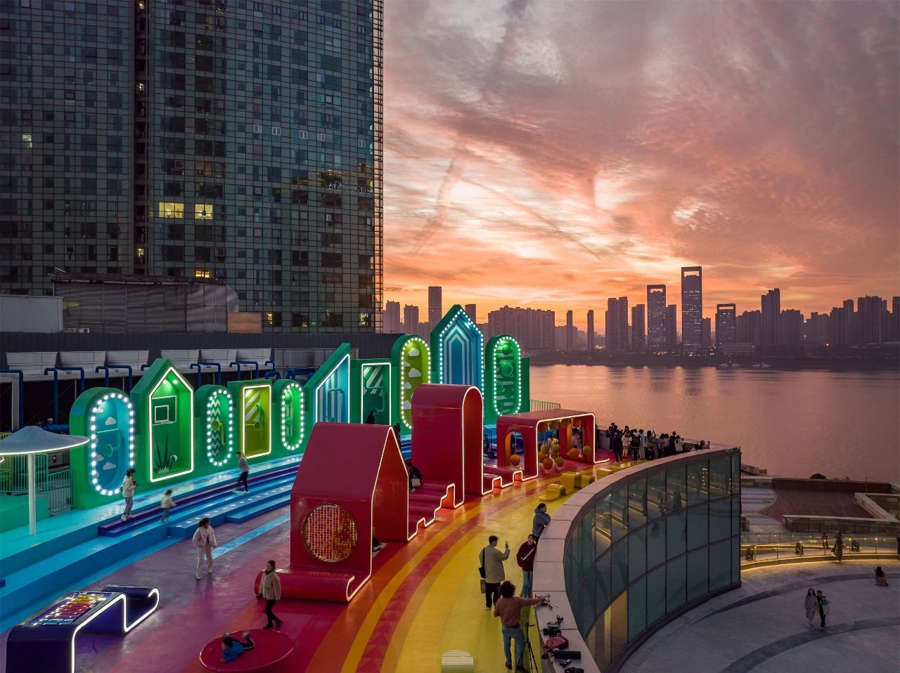 露天劇場還承載了項目中最令人矚目的主題裝置-“I ? 長沙”,是屋頂空間中辨識度最高、最與眾不同的IP形象。