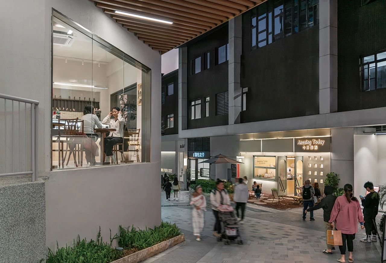 在遞進式設(shè)計中,景觀設(shè)計在大尺度上把九條山巷和樂群路打造出歷史韻味,在小尺度上,從物料到工法,用細(xì)節(jié)帶來氣質(zhì)和品質(zhì)。商家自主的店面設(shè)計、微環(huán)境設(shè)計和室內(nèi)設(shè)計,用時尚的生活元素彌補了土建設(shè)計所達不到的顆粒度。照明設(shè)計和二次元的商業(yè)包裝設(shè)計、藝術(shù)設(shè)計,營造了感性的商業(yè)氛圍。