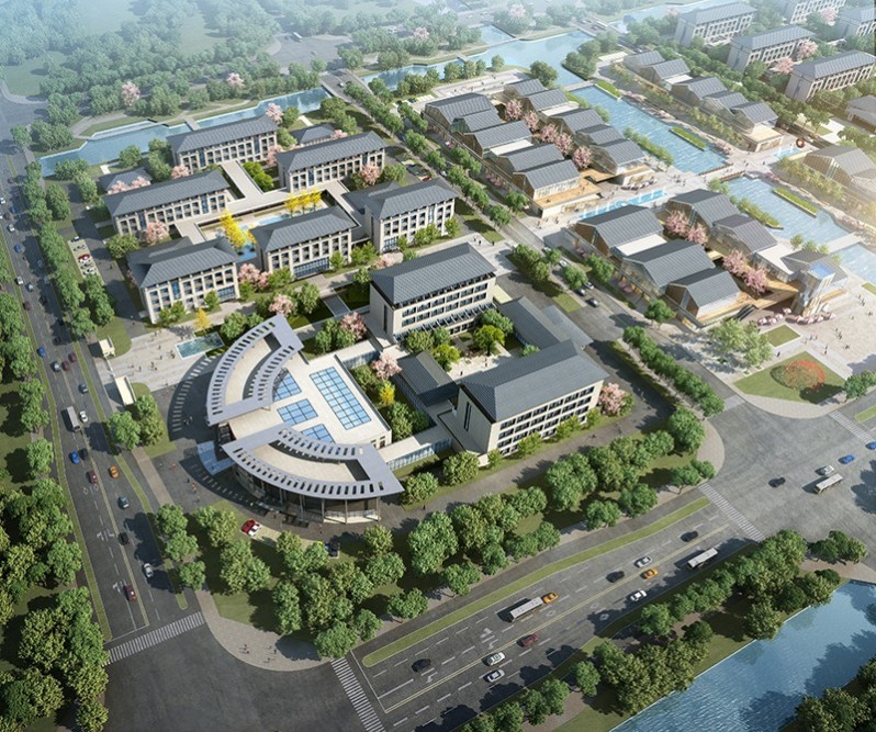 項目位于揚州市樸席鎮(zhèn),樸席中部片區(qū)一期規(guī)劃范圍內(nèi),其四至范圍為∶東起興席路,南臨金山路,西至坤余路,北靠橫四路,總建筑面積12.79萬平方米。以綠為基、以水為脈、以文為韻,并結(jié)合揚州以及樸席地方建筑及文化特色,將公共建筑融入傳統(tǒng)元素,體現(xiàn)樸席禪宗文化、水鄉(xiāng)文化和席鄉(xiāng)小鎮(zhèn)特色,塑造現(xiàn)代文明與古代文化交相輝映的揚派席風(fēng)建筑風(fēng)格。結(jié)合濱河步道、城市休閑綠道,串聯(lián)各城市生態(tài)休憩節(jié)點,構(gòu)成完整的健康活力環(huán)。依托麻線河兩側(cè)濱水商業(yè)街,打造公共服務(wù)休閑軸;根據(jù)功能分區(qū)特征,依托橫向景觀聯(lián)系,打造各功能聯(lián)系發(fā)展軸。規(guī)劃依托北側(cè)愛香河及公共綠地打造富有地方特色的濱河景觀廊道;依托南側(cè)城市綠帶,打造富有生機活力的城市休閑廊。形成康養(yǎng)服務(wù)片區(qū)、商業(yè)服務(wù)片區(qū)和醫(yī)療服務(wù)片區(qū)。